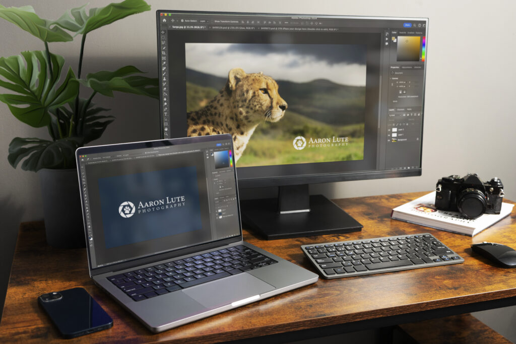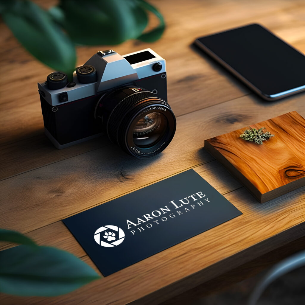 Logo design for a photographer who specialises in wildlife photography based in South Africa. The logo representing a lens with the paw-print of a hyena, it is purposely single coloured so it can work as a stamp when watermarking pictures
