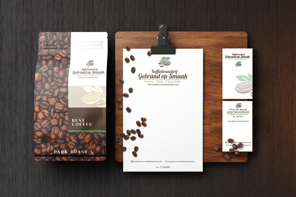 Gebrand op Smaak is a coffee roasting company based in The Netherlands that sells their own brand of coffee, tea and cocoa.Inspired by the products they sell, the logo emblem represents all of the plants of which they are originate. Find them on www.gebrandopsmaak.com
