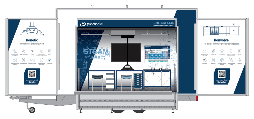 A mobile showroom was designed to travel the country and visit schools as well as contractors to show the new products and how they work